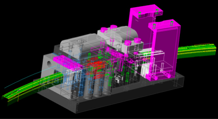 Automotive window frame stamping die: ADTI worked with a supplier to a second tier automotive contractor to develop a die to cut window roll formed channel to a specific length while simultaneously punching locating holes for metrological analysis of each part on a gage. Our customer created the concepts for the stamping die design and ADTI used the automotive companies first surface Catia model to develop the 3D tool assembly, all the die component parts, and the 2D drawings required for the die component fabrication. The channel had a subtle helical twist that required 3D layout and the establishment of datums to ensure the gaging holes were precisely located. |