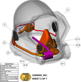 Gorski2000ss commercial diving helmet: The Gorski Helmet is a state of the art commercial diving helmet designed for the professional diver. ADTI designed the oral-nasal mask and safety valve system for the Gorski company working closely with their creator to model a design in Pro-Engineer maintaining a severely compressed development schedule and a constrained budget. ADTI also contributed to the manufacturing effort by lining up a supplier for the safety valve components. |